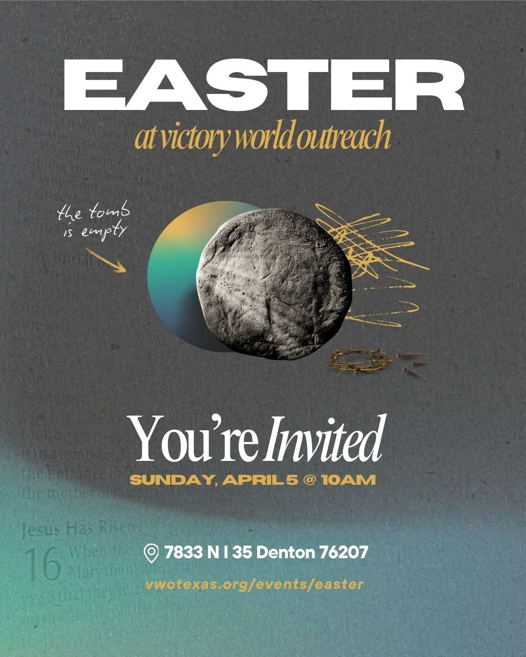Easter service will be an engaging, dynamic atmosphere geared towards ministering to your entire family. It will be full of life, creativity, love and encouragement. There will be live musicians that will lead in worship and a Jesus-centered message by our pastor.